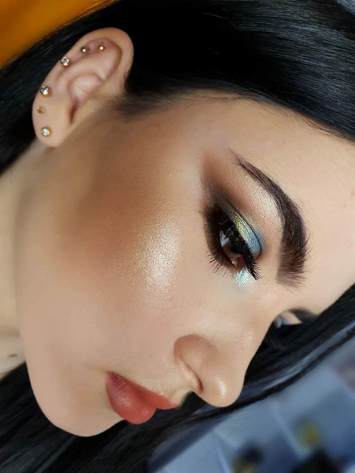 Before completing the look, add a light dusting of blush to the crease around the temples, to bring it all together, “For a luminous skin effect, mix your foundation with a golden or a pearly white eye shadow. It gives your complexion a radiance beyond compare. “If you’re skin is extremely oily and you don’t have face primer handy, just apply a little corn starch to your skin before your foundation.”