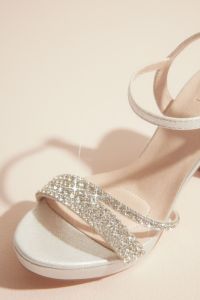 REMOVABLE ANKLE BOW CRYSTAL STRAP HEELED SANDALS and PLATFORM WEDDING SANDALS.